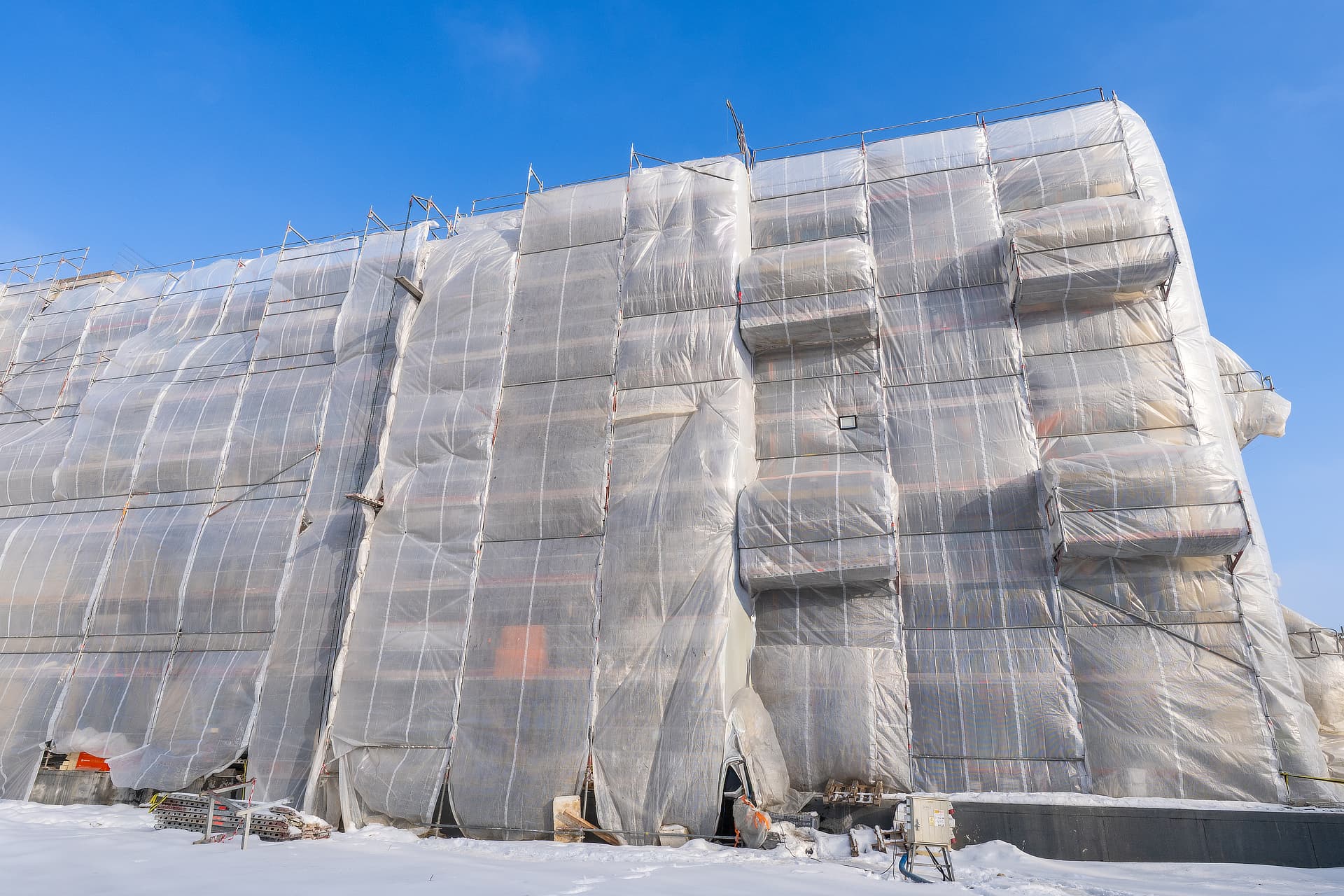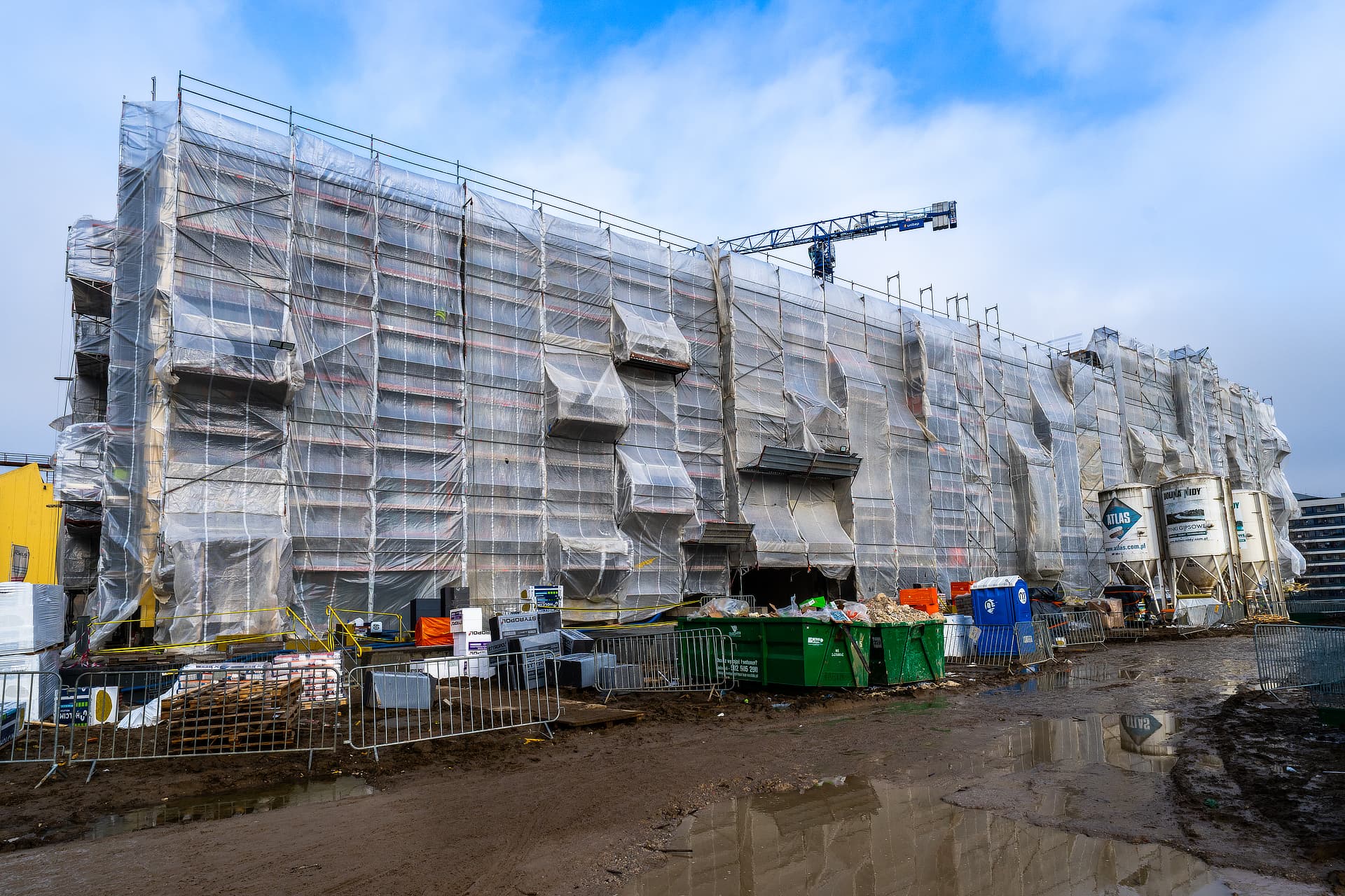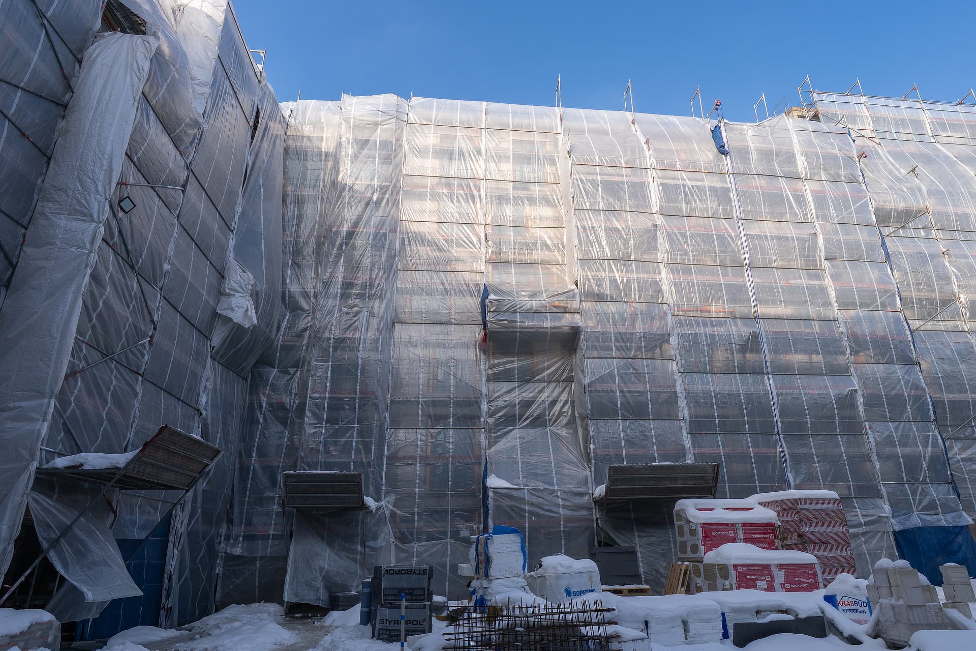 Budynek o zróżnicowanej wysokości – od 4 do 6 pięter. Architekturę charakteryzują bardzo duże okna